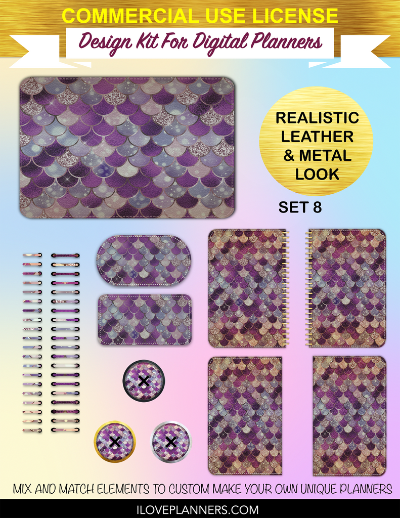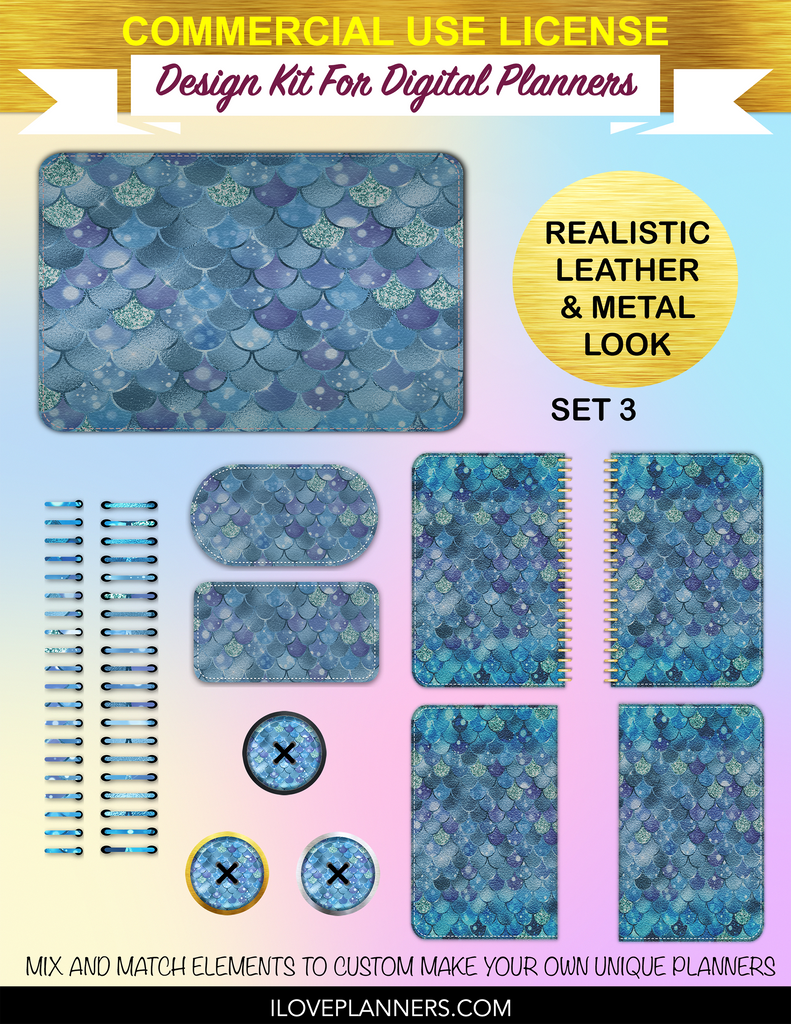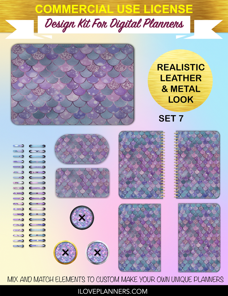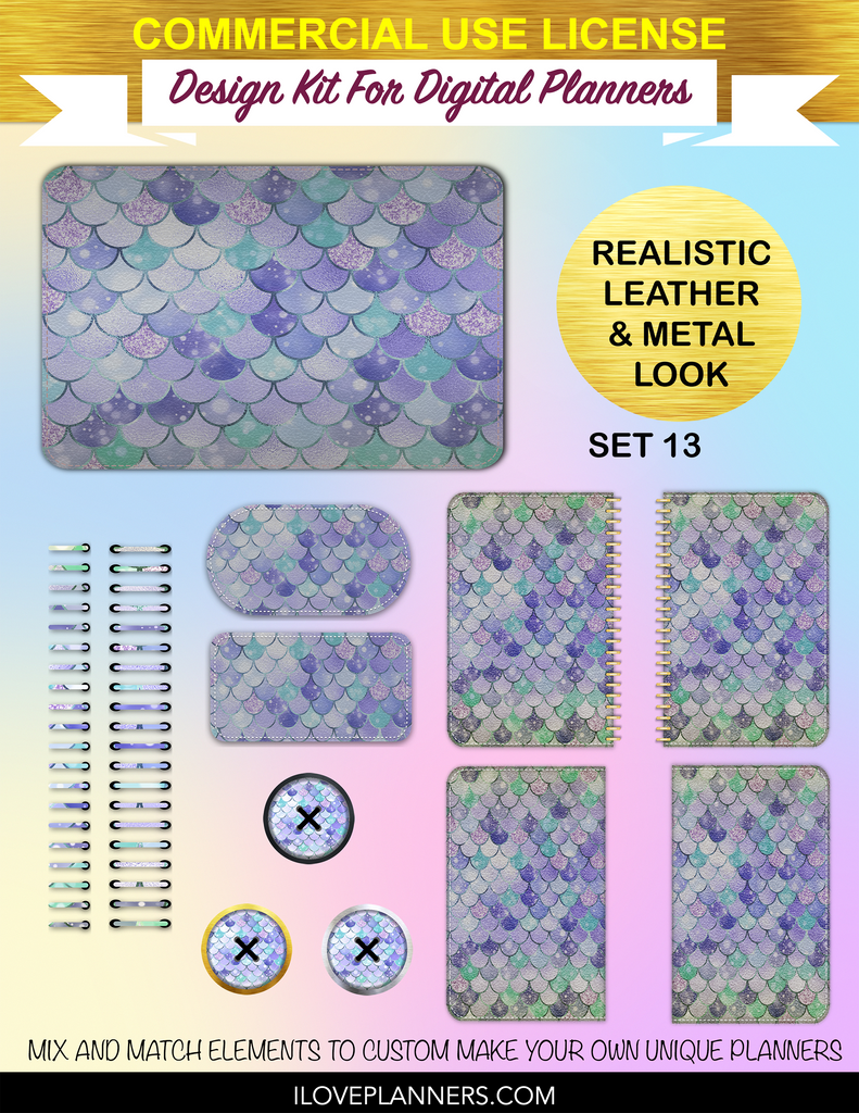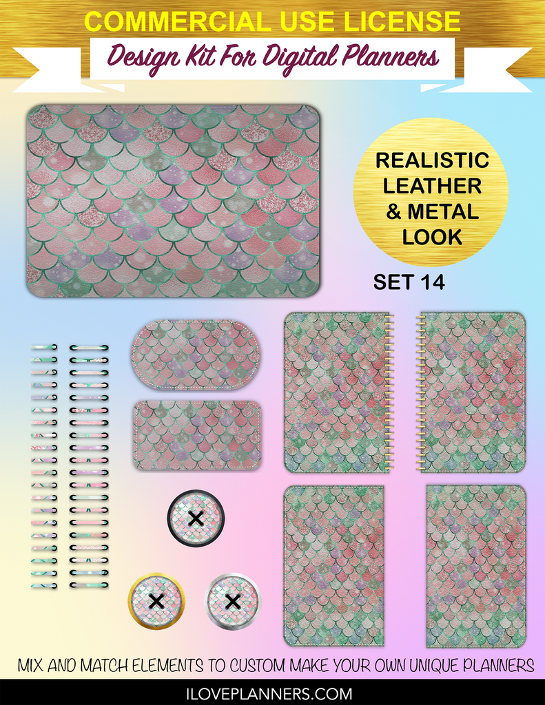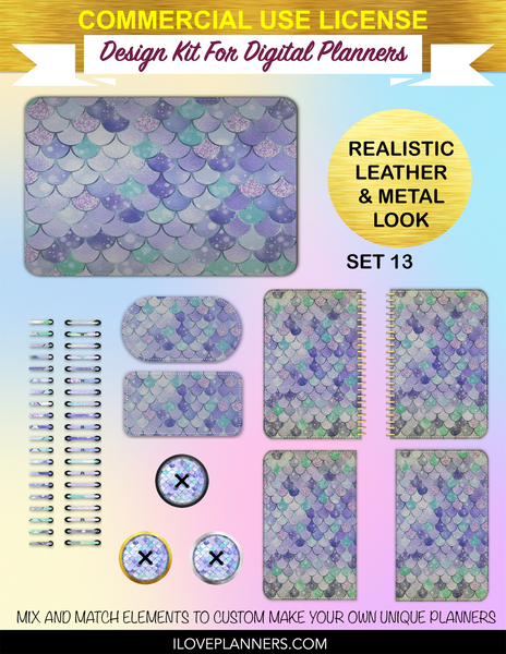 Bokeh Mermaid Digital Planners, Spirals, Coils, Customize Your Digital Planners, Commercial Use OK, Digital Planners, Digital Journals, Compatible for PC, Mac, CANVA. #25