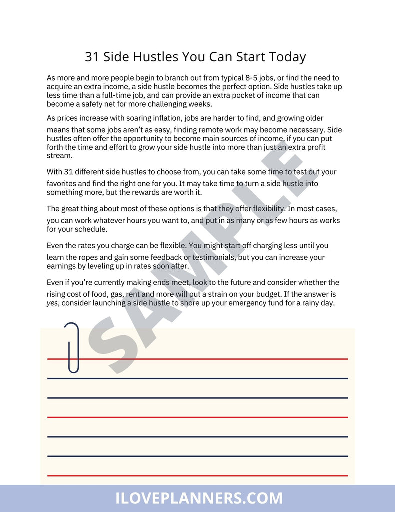 EBOOK- 31 Side Hustles You Can Start Today. Instant Download, Digital ebook. R37