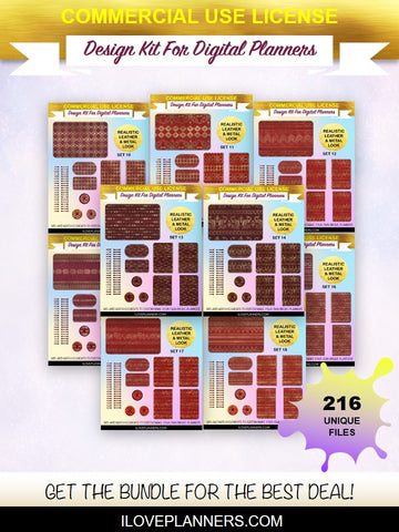 Bohemian Red Leather Digital Planners, Cover Kit, Spirals, Coils, Customize Your Digital Planners, Commercial Use OK, Digital Planners, Digital Journals, Compatible for PC, Mac, CANVA. #159
