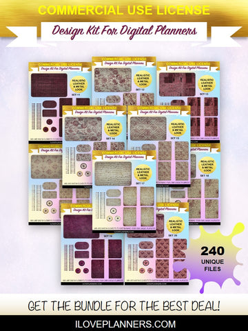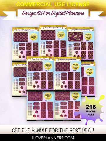 Burgundy Ephemera Digital Planners, Cover Kit, Spirals, Coils, Customize Your Digital Planners, Commercial Use OK, Digital Planners, Digital Journals, Compatible for PC, Mac, CANVA. #160