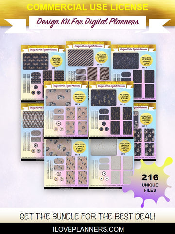 Black and Silver Glam Digital Planners, Cover Kit, Spirals, Coils, Customize Your Digital Planners, Commercial Use OK, Digital Planners, Digital Journals, Compatible for PC, Mac, CANVA. #179