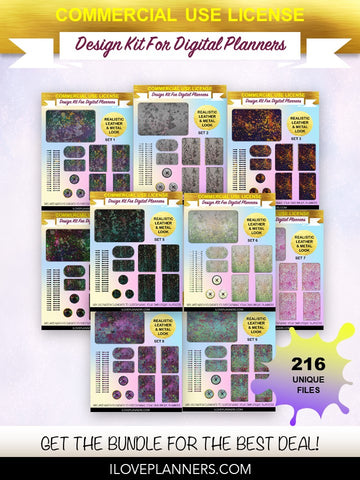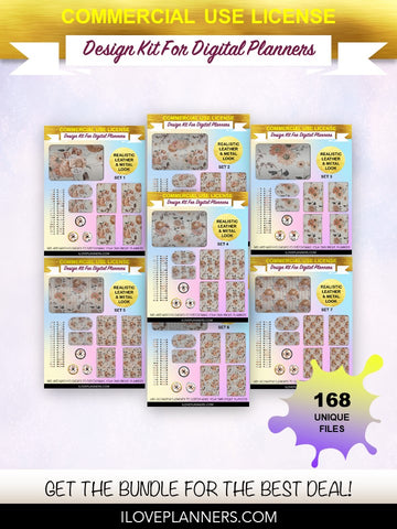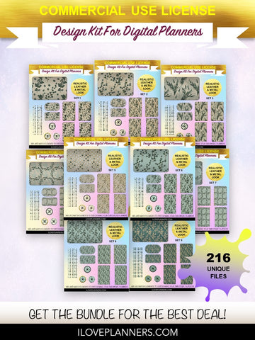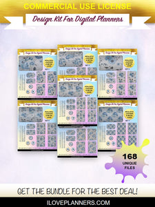 Damask Ephemera Digital Planners, Cover Kit, Spirals, Coils, Customize Your Digital Planners, Commercial Use OK, Digital Planners, Digital Journals, Compatible for PC, Mac, CANVA. #170