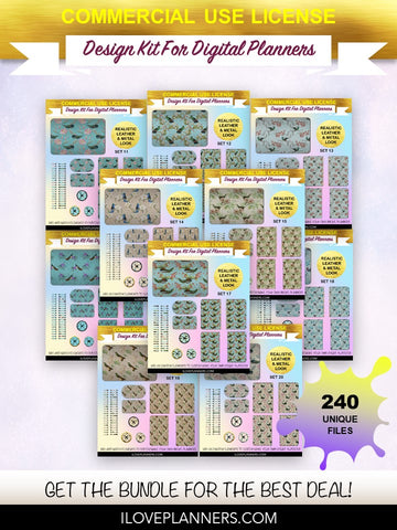 Dark Cyan Shimmer for Digital Planners, Cover Kit, Spirals, Coils, Customize Your Digital Planners, Commercial Use OK, Digital Planners, Digital Journals, Compatible for PC, Mac, CANVA. #208