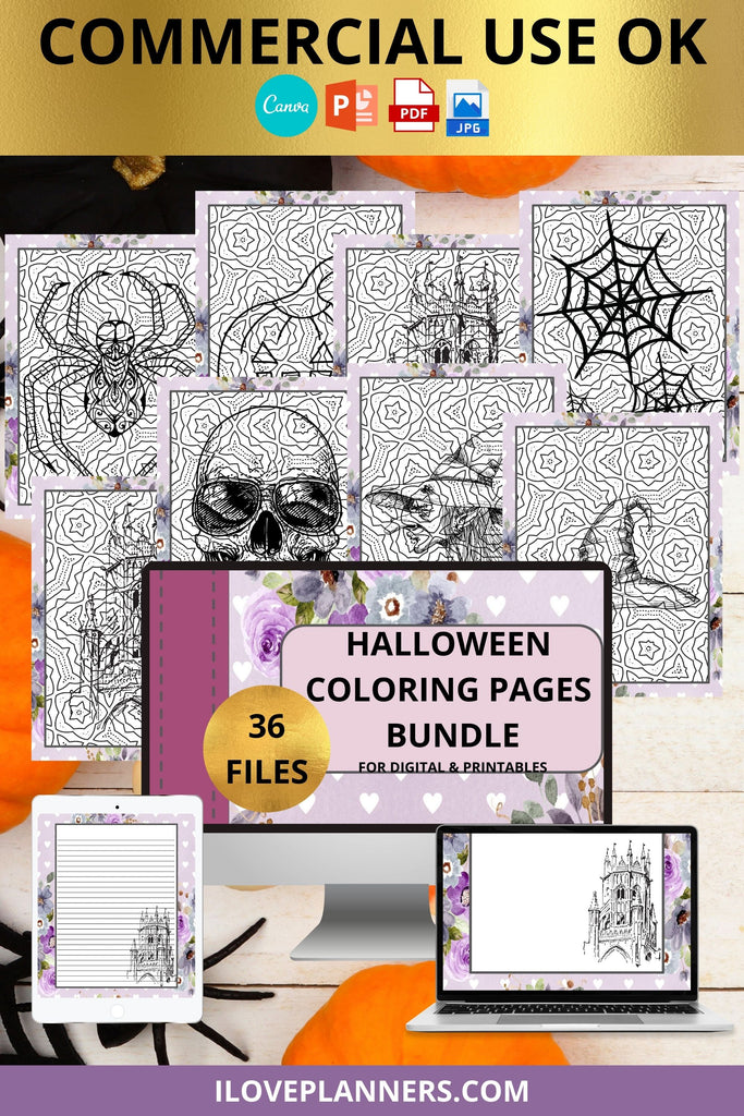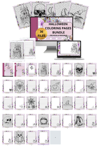 Gothic Halloween Coloring Book and Journal/ Printable Coloring Book/ Journal/ Digital Download/ Instant Download
