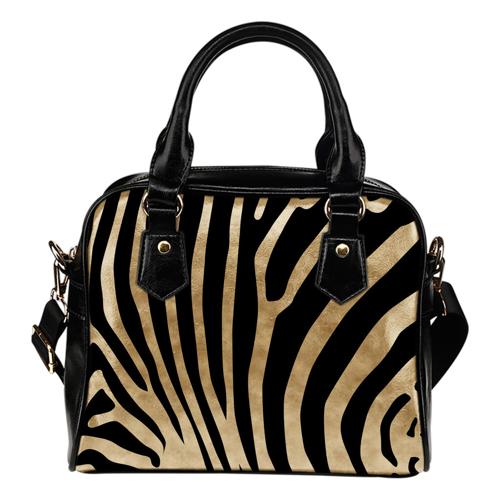 Animal Prints Zebra Theme Women Fashion Shoulder Handbag Black Vegan Faux Leather