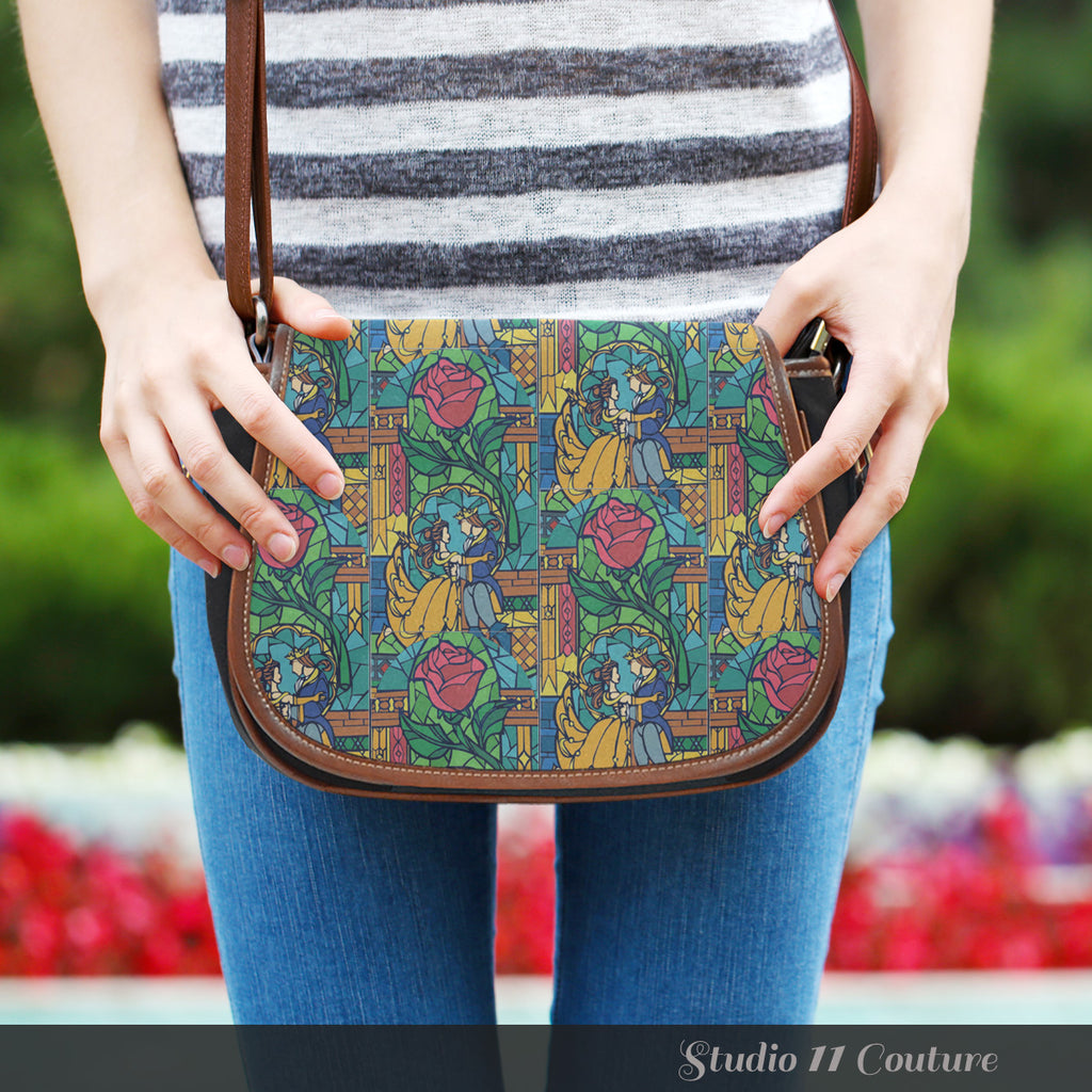 Beauty And Beast Stained Glass Crossbody Shoulder Canvas Leather Saddle Bag