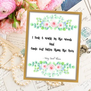 I Took A Walk In The Woods And Came Out Taller Than The Trees - Henry David Thoreau Quote - Thoreau Print - Nature Quote - Hiking Quote
