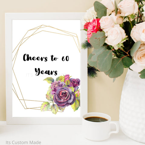 Cheers to 60 Years Printable Sign - 60th Birthday Decoration Sign - 60th Birthday Party Decor Sign - Birthday - Custom Birthday Sign
