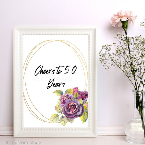 Cheers to 50 Years Birthday Party - 50th Birthday Decoration Sign - Custom Birthday Sign - 50th and Fabulous -Happy 50th Birthday Sign - Floral Birthday Sign
