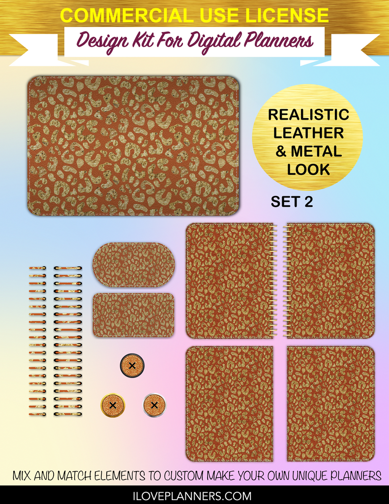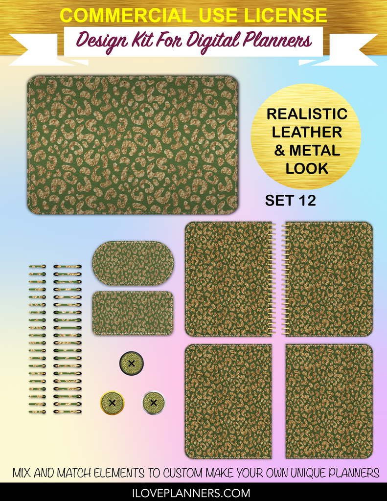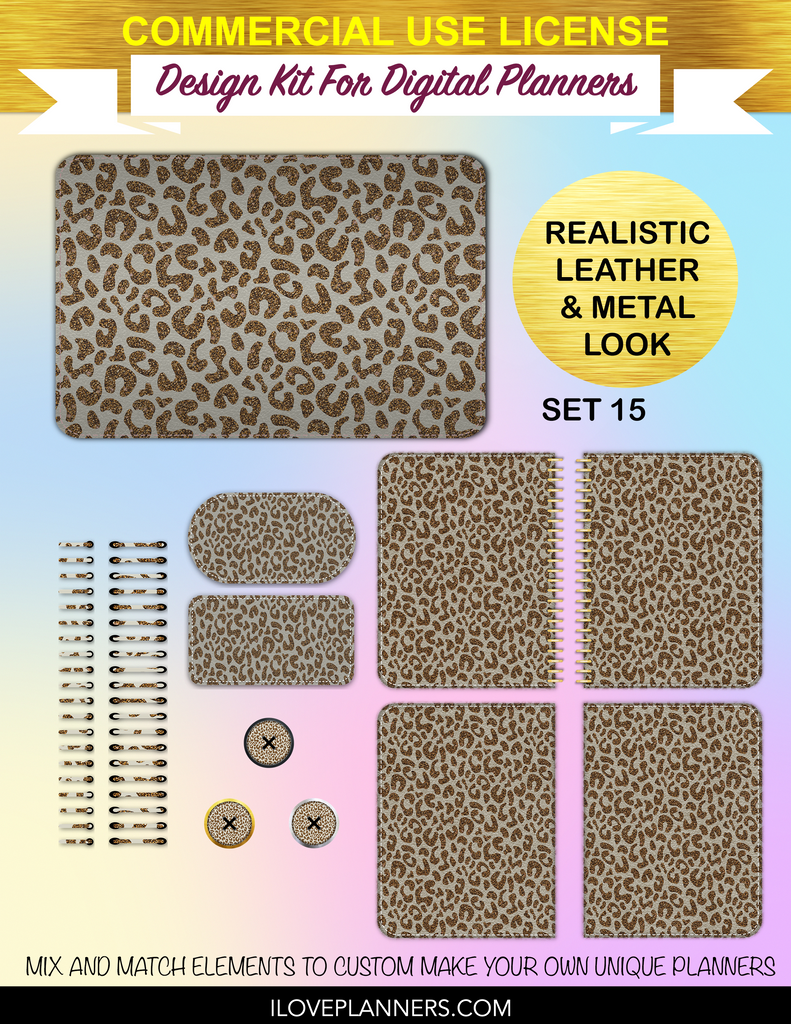 Gold & Glitter Cheetah Cover Kit for Digital Planners, Spirals, Coils, Customize Your Digital Planners, Commercial Use OK, Digital Planners, Digital Journals, Compatible for PC, Mac, Canva. #125