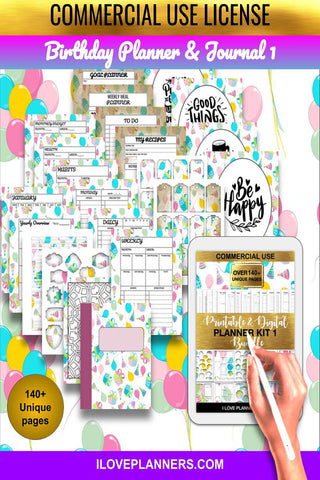 Birthday Planner and Journal/ Coloring Book/ Coloring Planner/ Printable Planner and Journal/ Journal, Planner, DIY, Print At Home, Digital Download. Full Size 140 pages v1