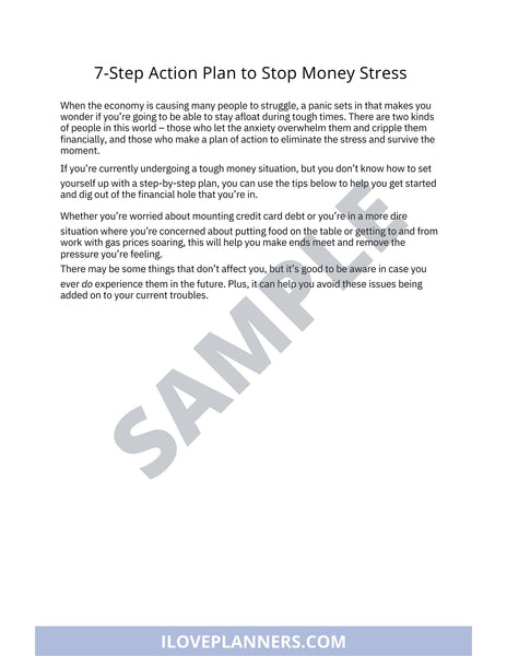 7 Day Digital Course - action plan to stop money stress, Ebook, Workbook, Planner, Journal, Instant Download, Digital ebook, R40