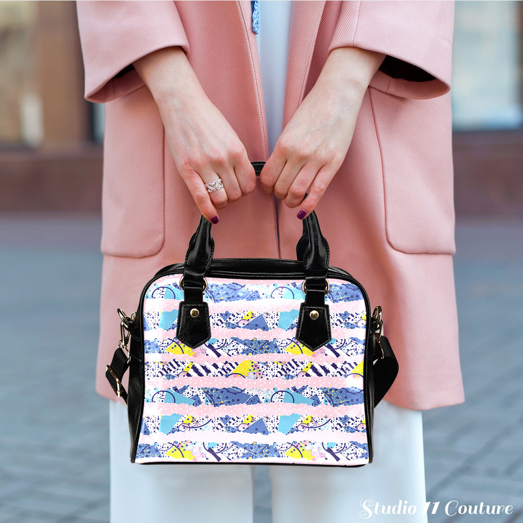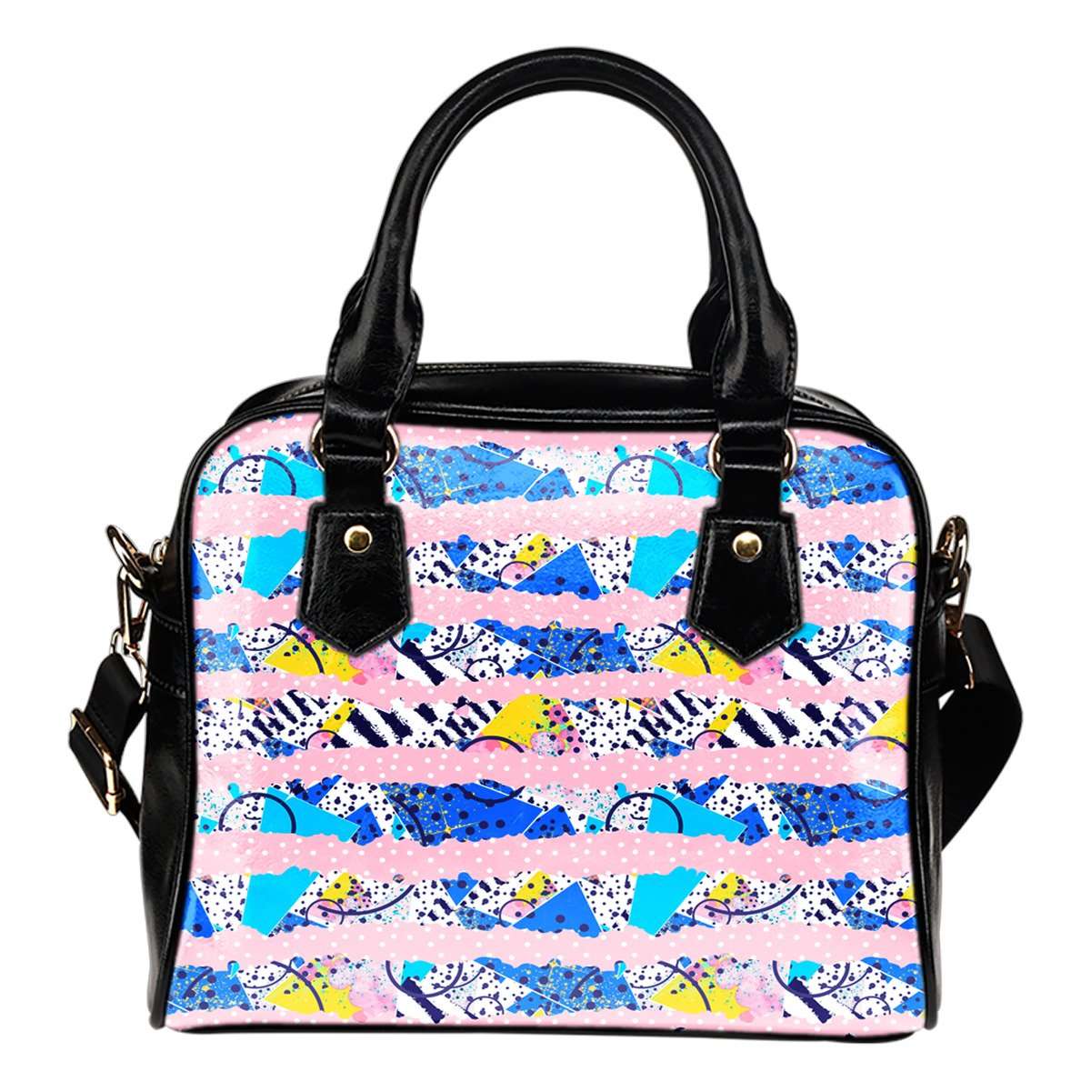80s Geometric Pattern #1 Fashion Shoulder Handbag w/Removable Shoulder Straps Made of Vegan Leather