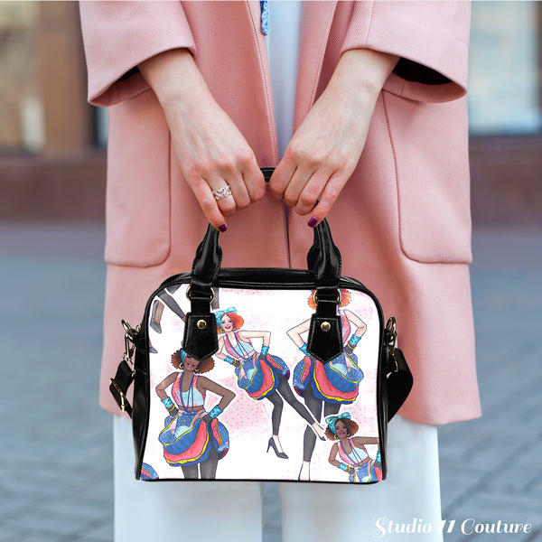 80's Fashion Girls Patterns #4 Fashion Shoulder Handbag w/ Removable Shoulder Straps Made of Vegan Leather - STUDIO 11 COUTURE