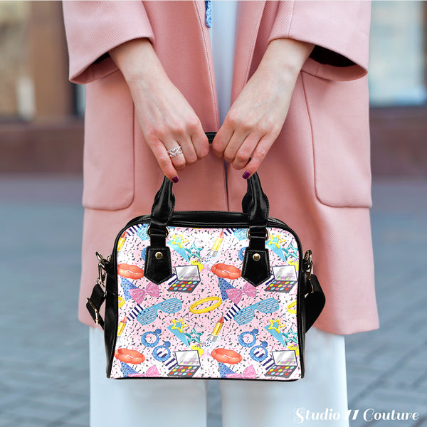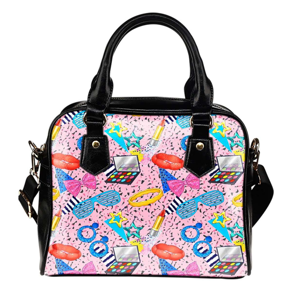 80s Theme Women Fashion Shoulder Handbag Black Vegan Faux Leather #7