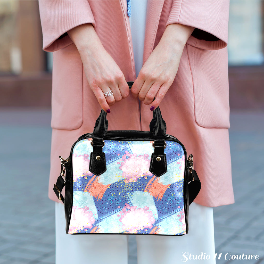 80s Theme Women Fashion Shoulder Handbag Black Vegan Faux Leather #13