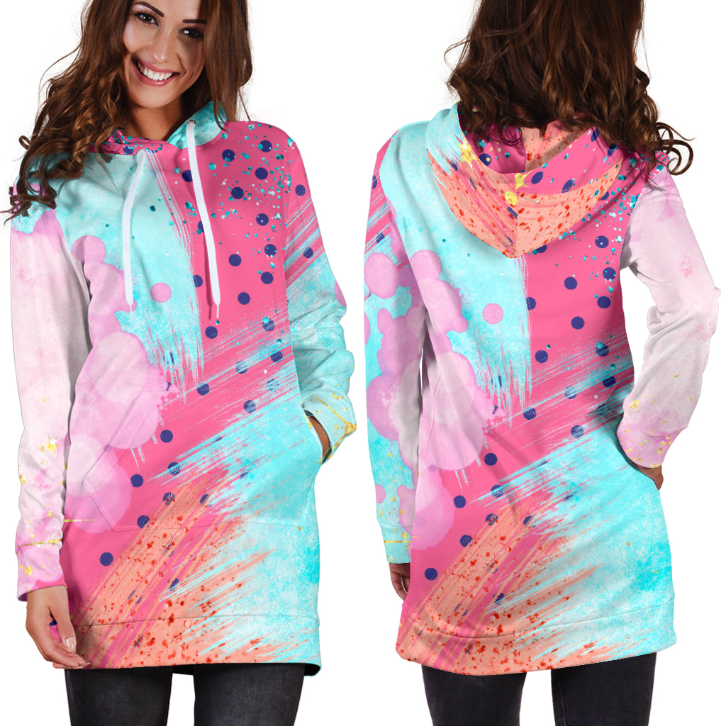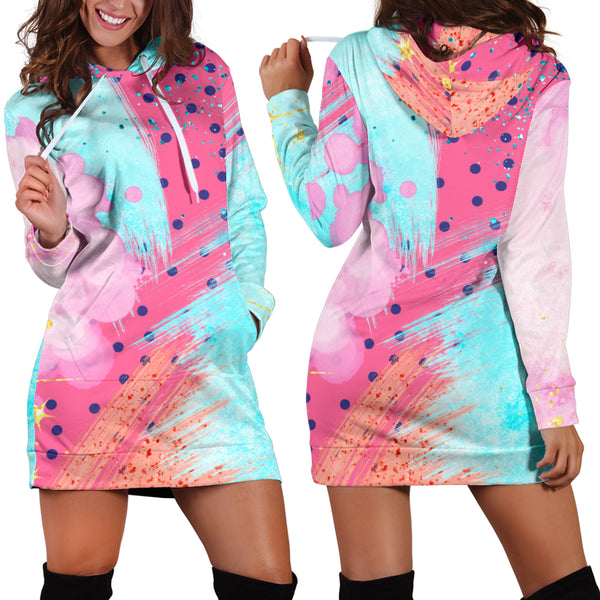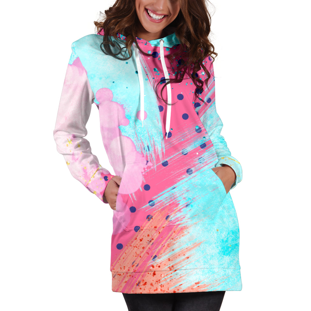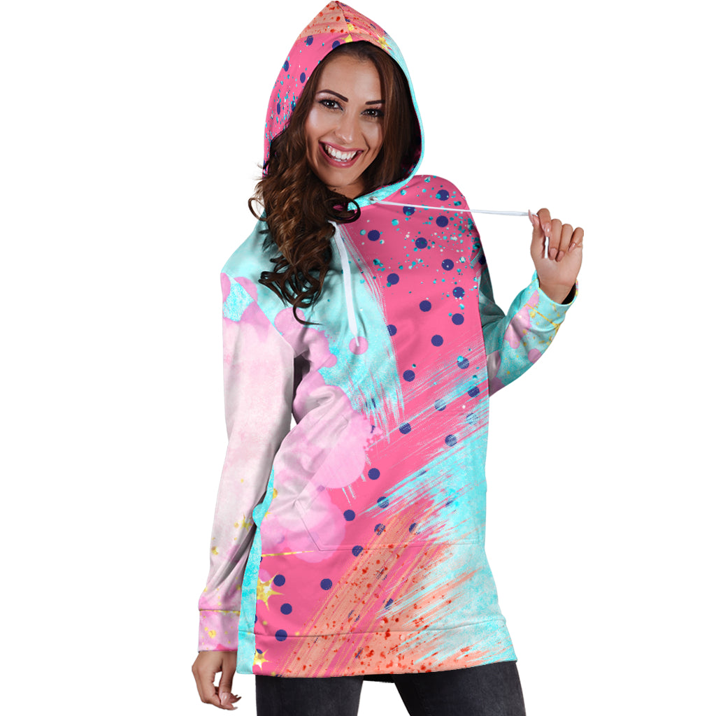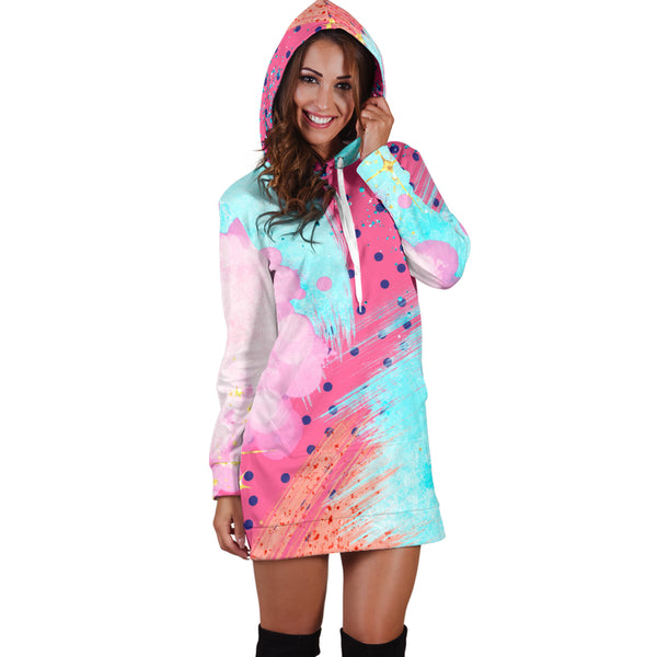 Studio11Couture Women Hoodie Dress Hooded Tunic 80s Pinky Shades Fashion Girl Athleisure Sweatshirt