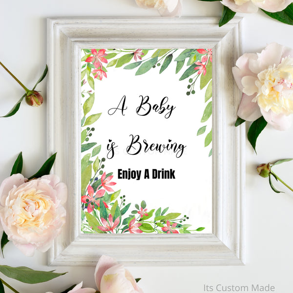 A Baby is Brewing Baby Shower Wall Art Sign - Coffee Bar Wall Art Sign - Coffee and Tea Station Wall Art Sign - Eucalyptus Baby Shower Wall Art Decor - Gender Neutral Wall Art Decorations