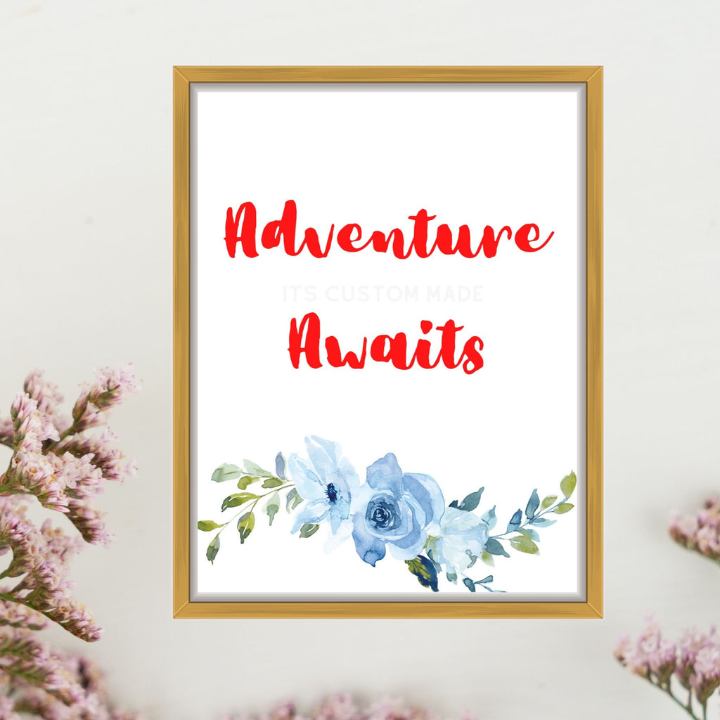 Adventure Awaits Sign - Wedding Welcome Sign - Travel Theme - Bridal Shower Decorations - Welcome Printable - Poster Printable - Wedding Easel Sign