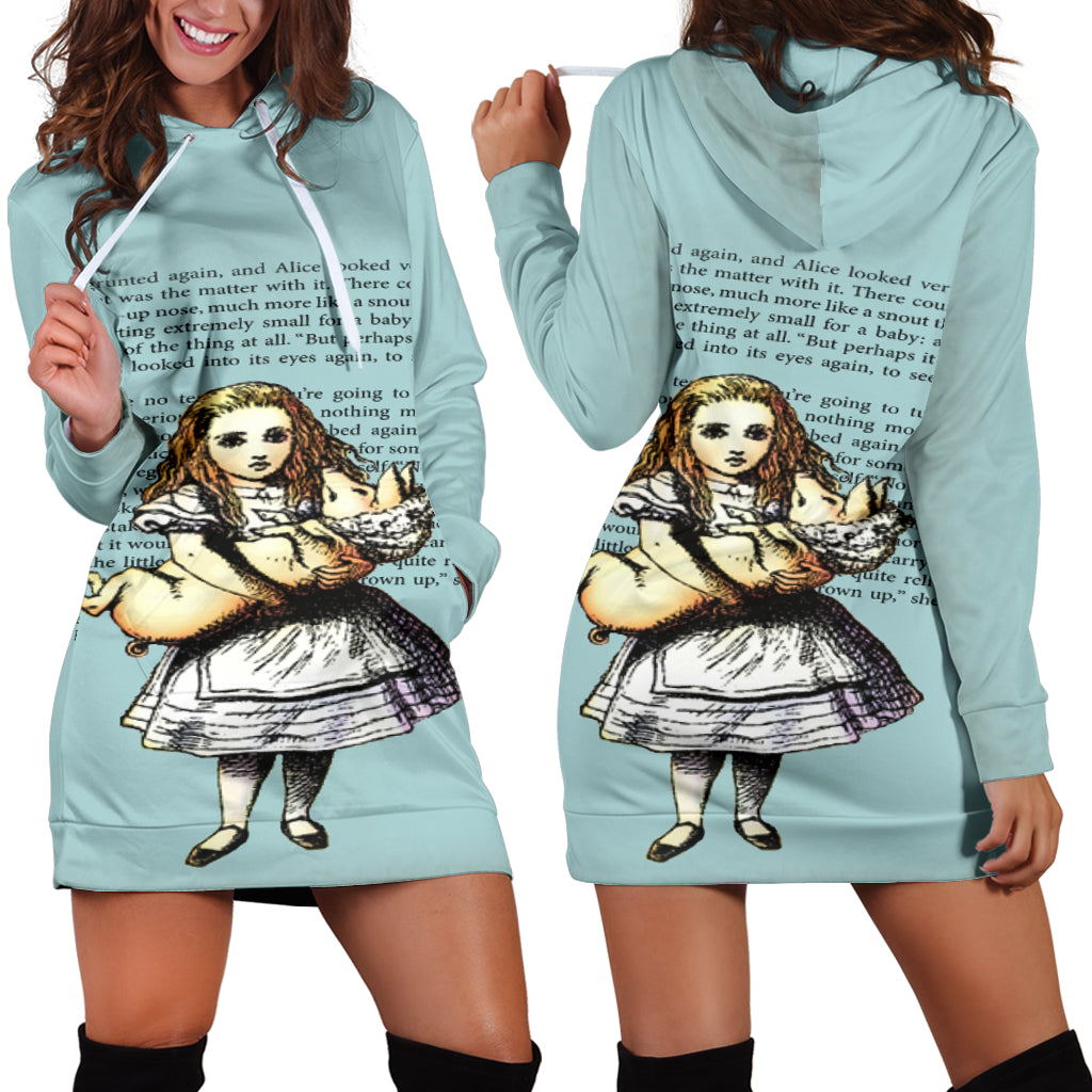 Studio11Couture Women Hoodie Dress Hooded Tunic Alice And The Pig Athleisure Sweatshirt