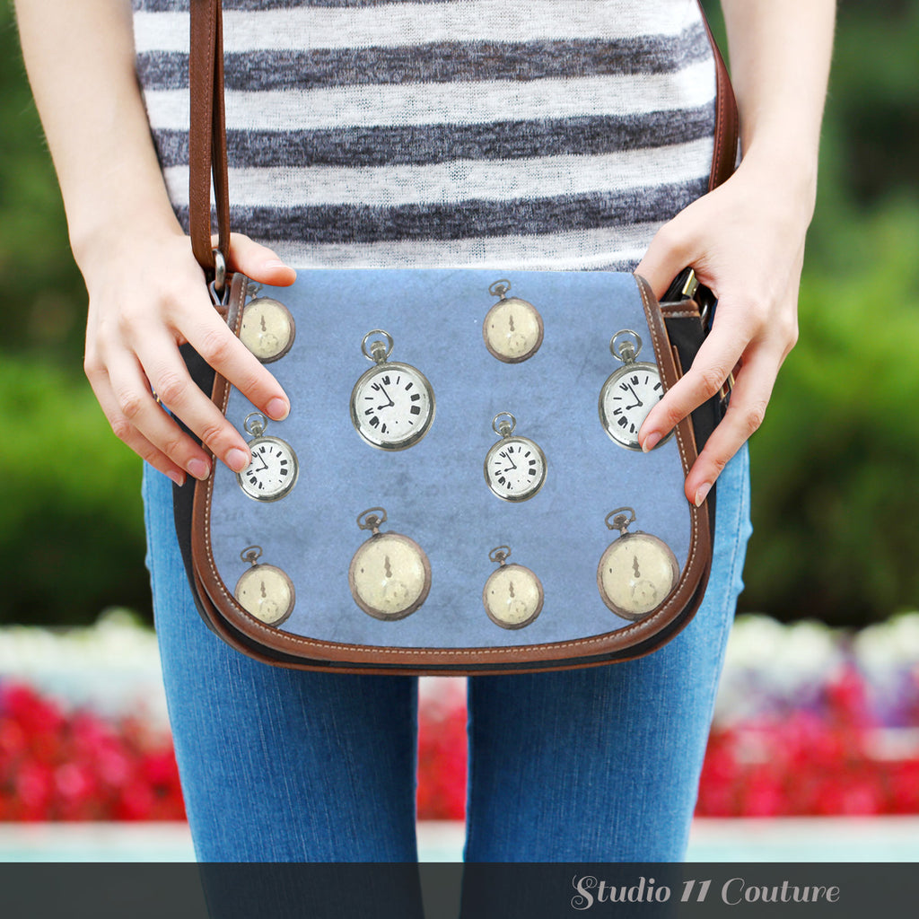 Alice Time Crossbody Shoulder Canvas Leather Saddle Bag
