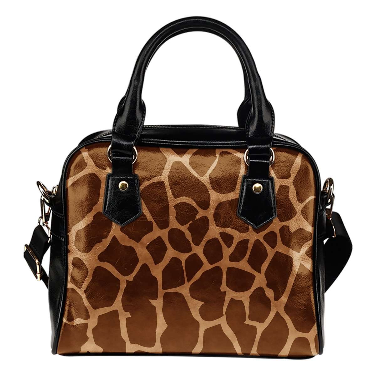 Animal Prints Giraffe Theme Women Fashion Shoulder Handbag Black Vegan Faux Leather