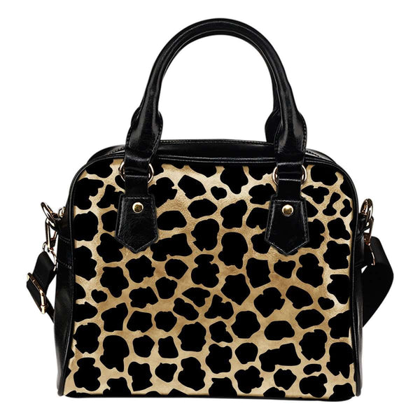 Animal Prints White Leopard Theme Women Fashion Shoulder Handbag Black Vegan Faux Leather