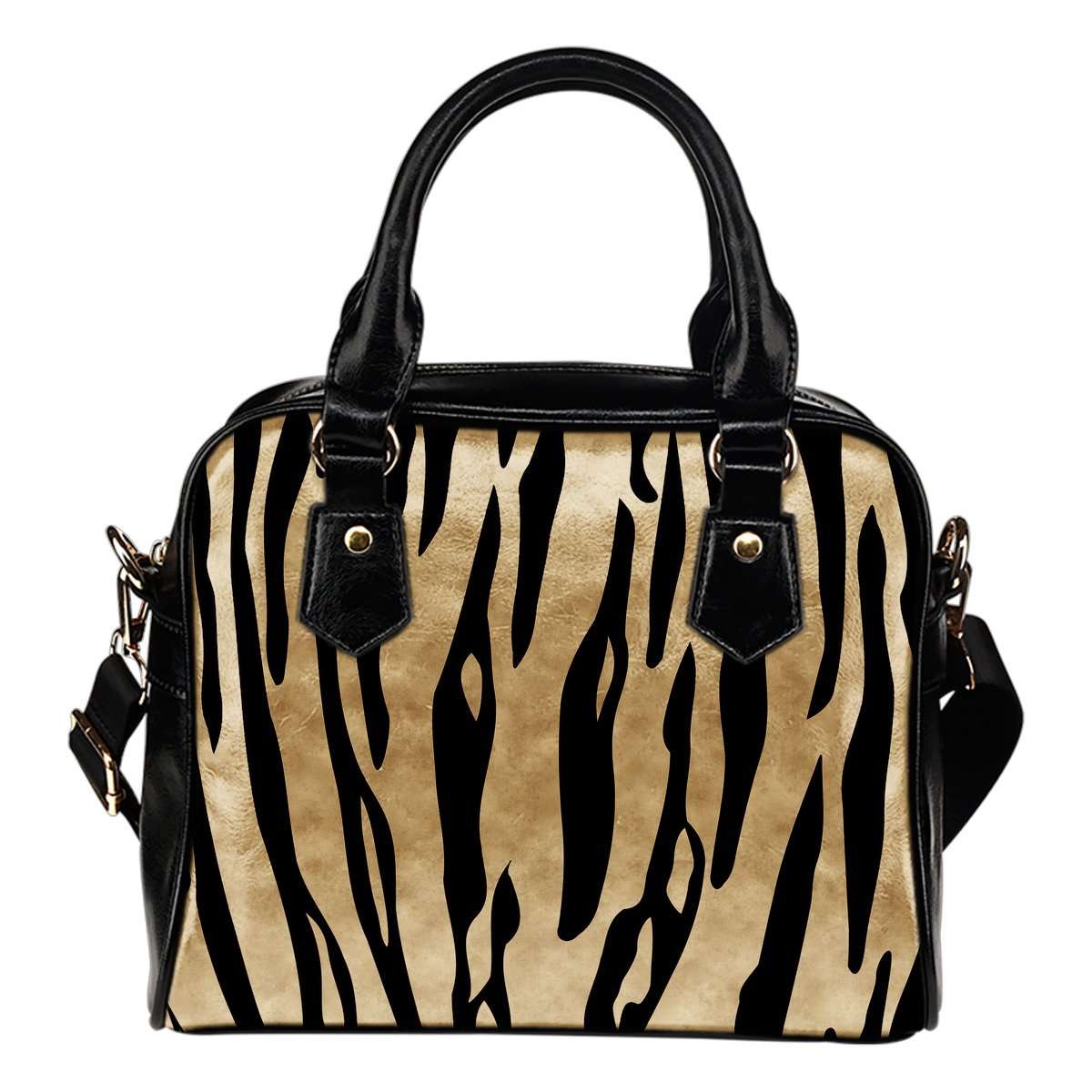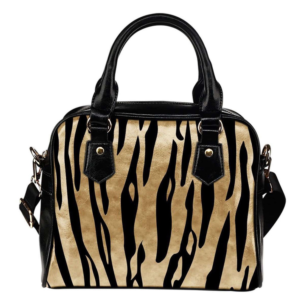 Animal Prints White Tiger Stripes Theme Women Fashion Shoulder Handbag Black Vegan Faux Leather