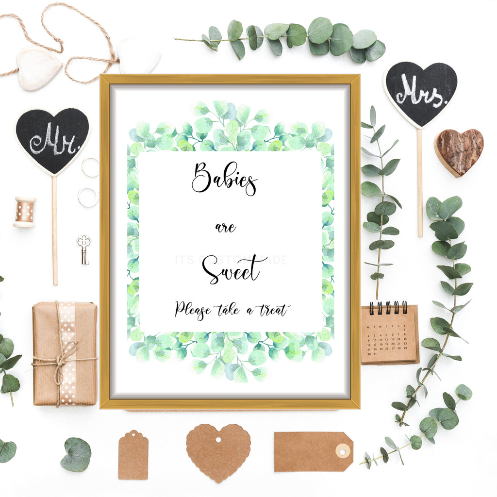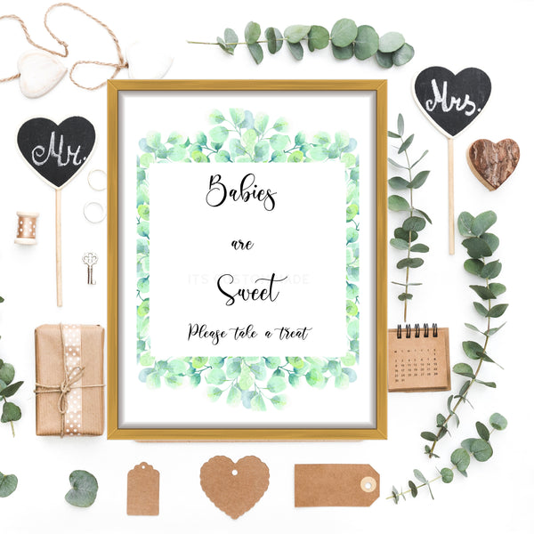 Babies are Sweet Dessert Table Decor Sign - Succulent Baby Shower Printable Decor Sign - Gender Neutral Baby Shower Decor Sign - Blue and Green Baby Shower Decorations Sign