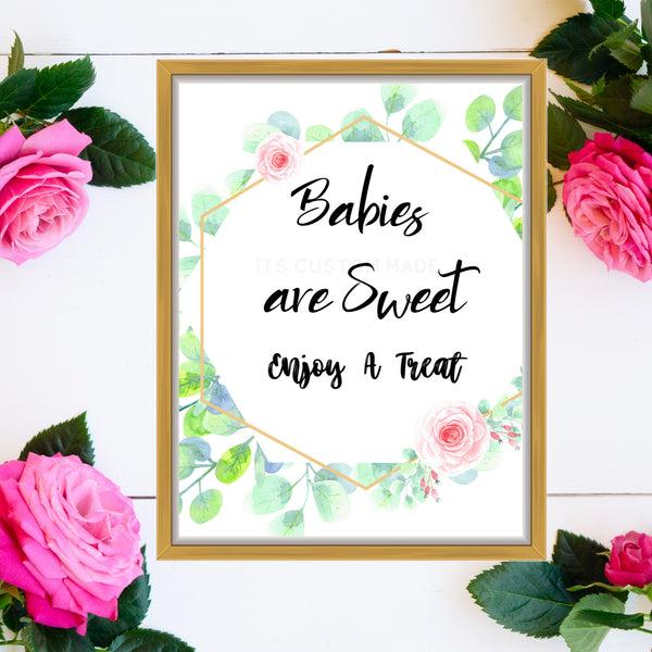 Babies are Sweet, Enjoy a Treat Party Decor Sign - Baby Shower Dessert Table Printable Wall Art - Eucalyptus Baby Shower Party Decor Sign - Sweets Table Printable Sign - Dessert Table Printable Wall Art Sign