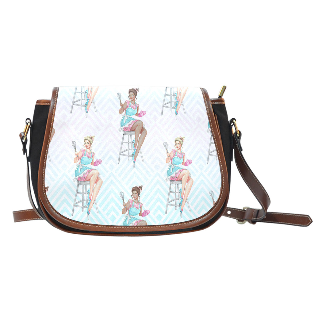 Baking Themed Pastry Lady Crossbody Shoulder Canvas Leather Saddle Bag