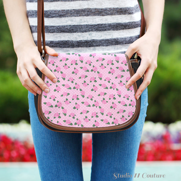 Ballerina Rose (A3) Crossbody Shoulder Canvas Leather Saddle Bag