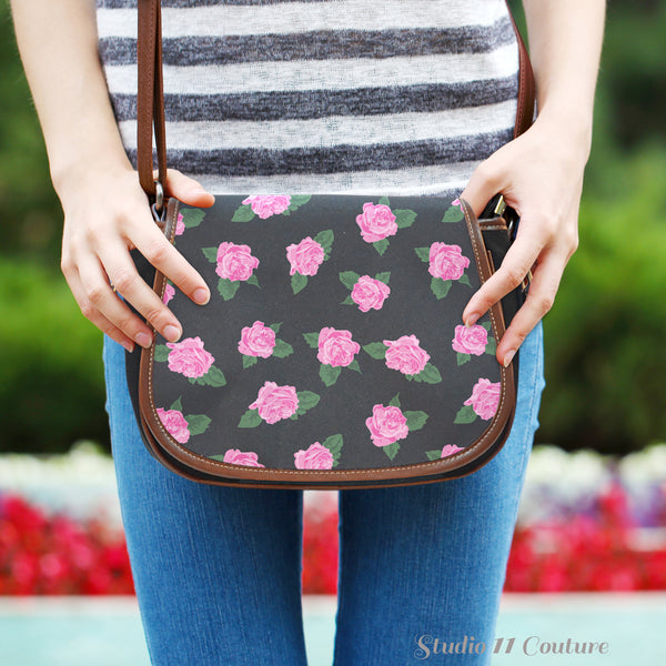 Ballerina Rose (A8) Crossbody Shoulder Canvas Leather Saddle Bag