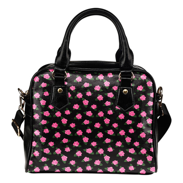 Ballerina Rose Themed Design B1 Women Fashion Shoulder Handbag Black Vegan Faux Leather