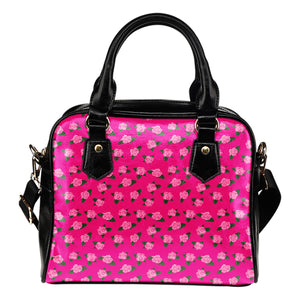 Ballerina Rose Themed Design B7 Women Fashion Shoulder Handbag Black Vegan Faux Leather
