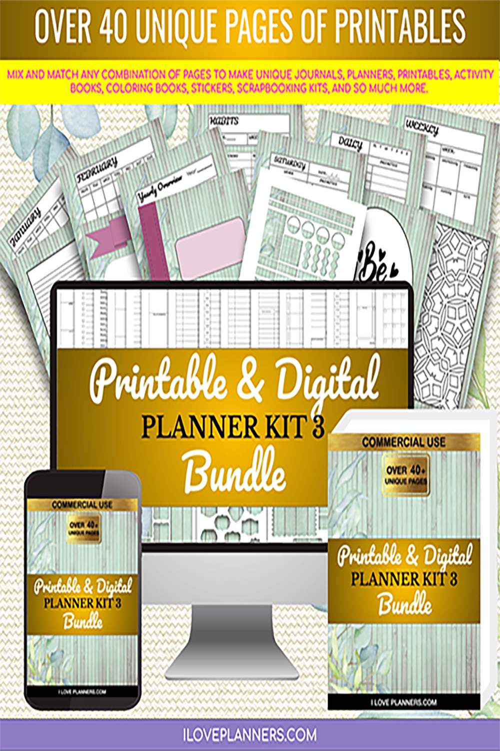 - Includes Planner Pages, Journal Pagees, Coloring pages, and a whole lot more.