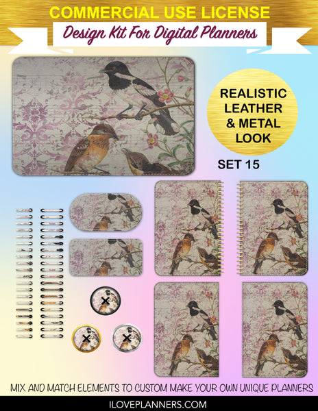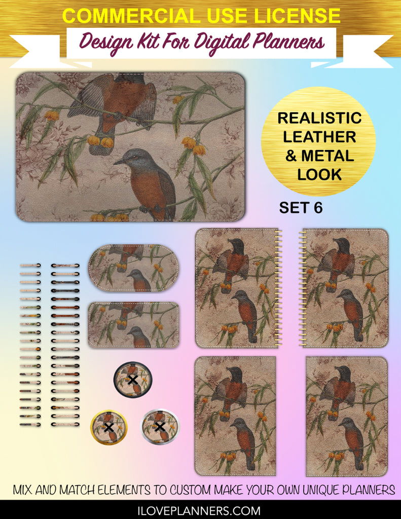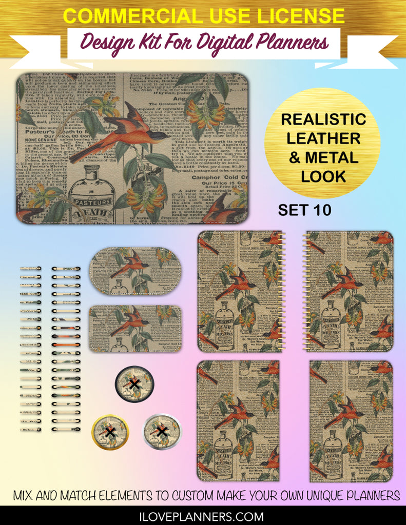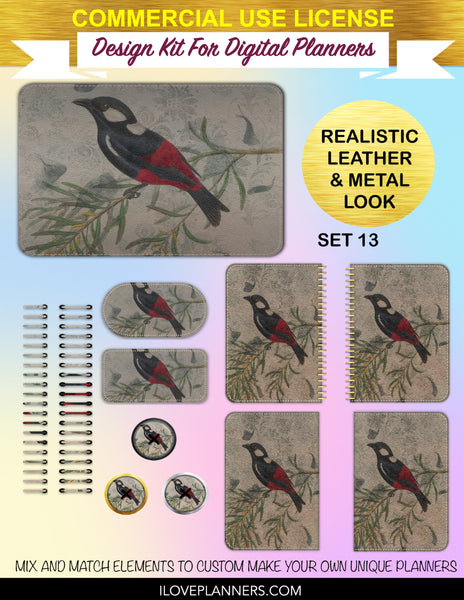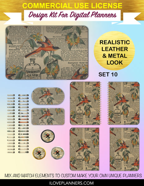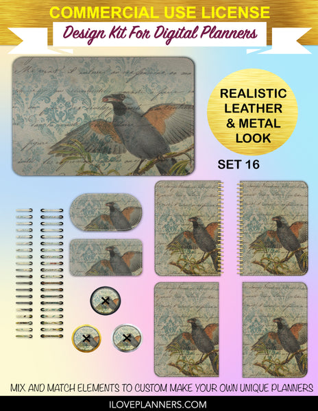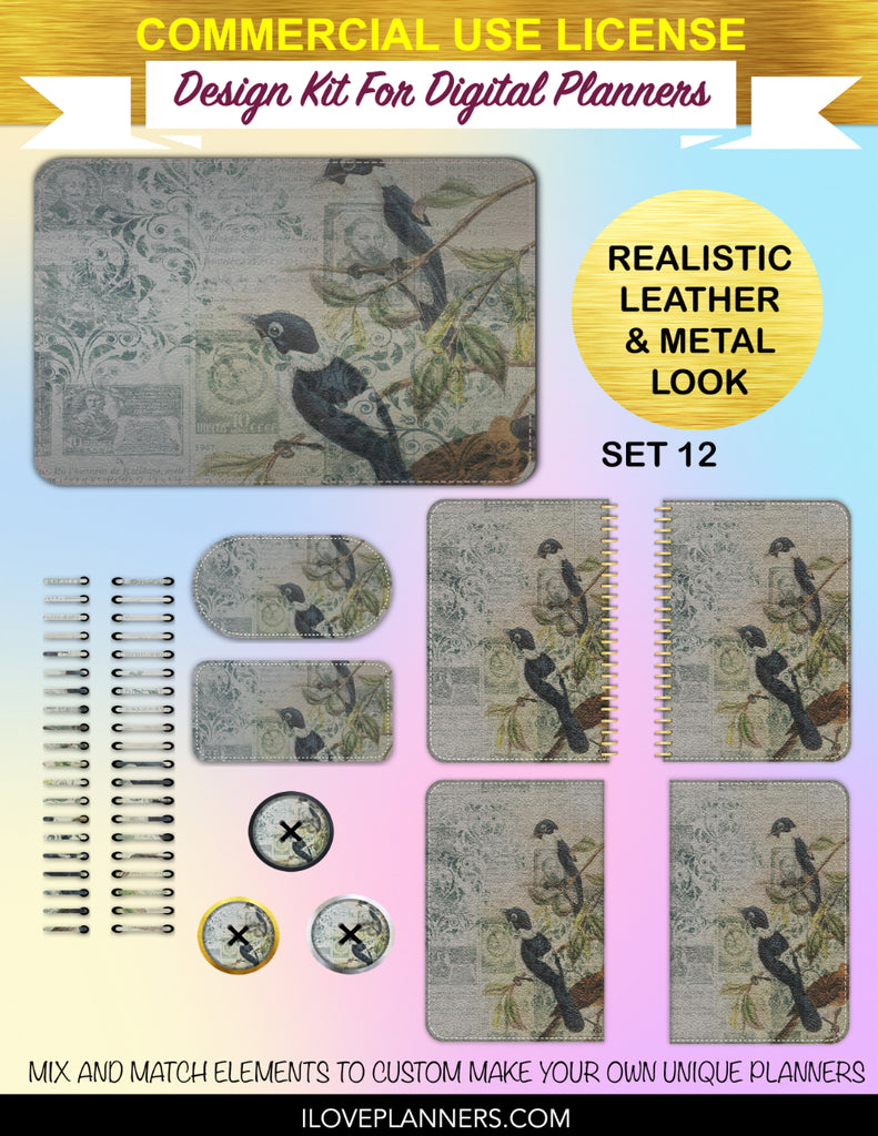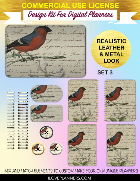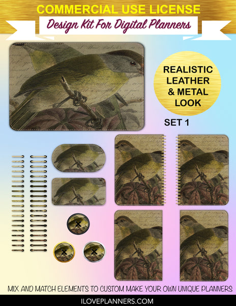 Bird Ephemera Digital Planners, Cover Kit, Spirals, Coils, Customize Your Digital Planners, Commercial Use OK, Digital Planners, Digital Journals, Compatible for PC, Mac, CANVA. #176