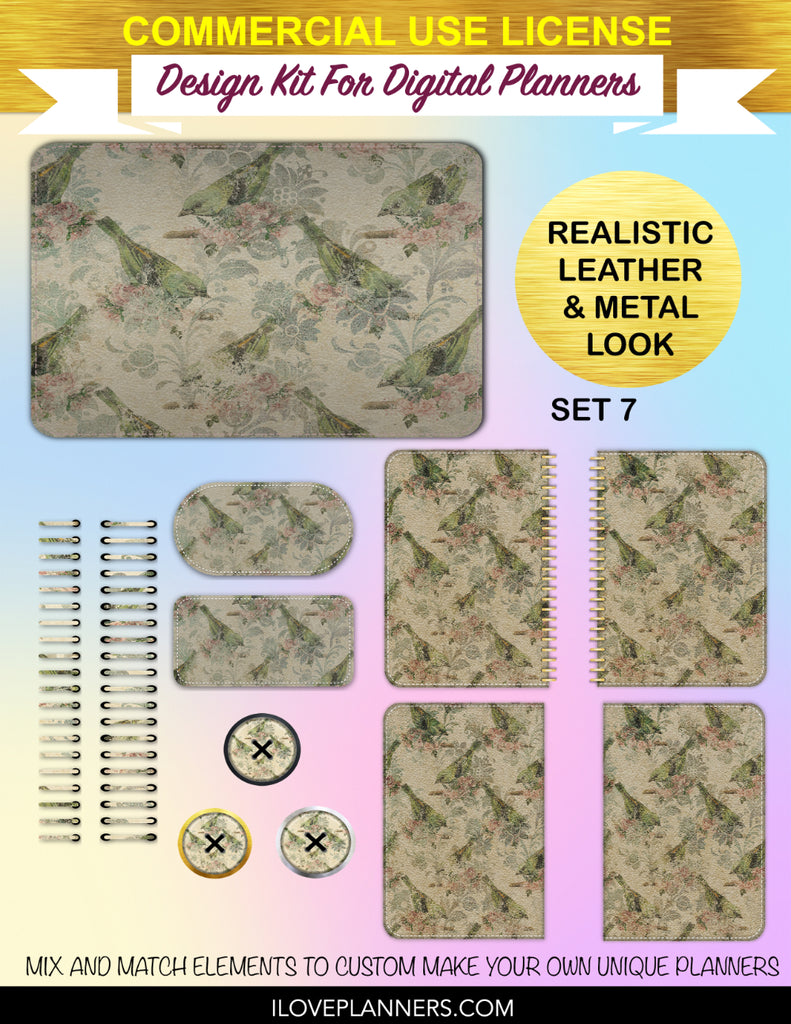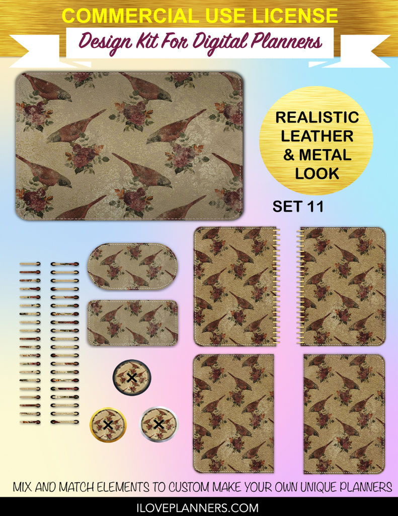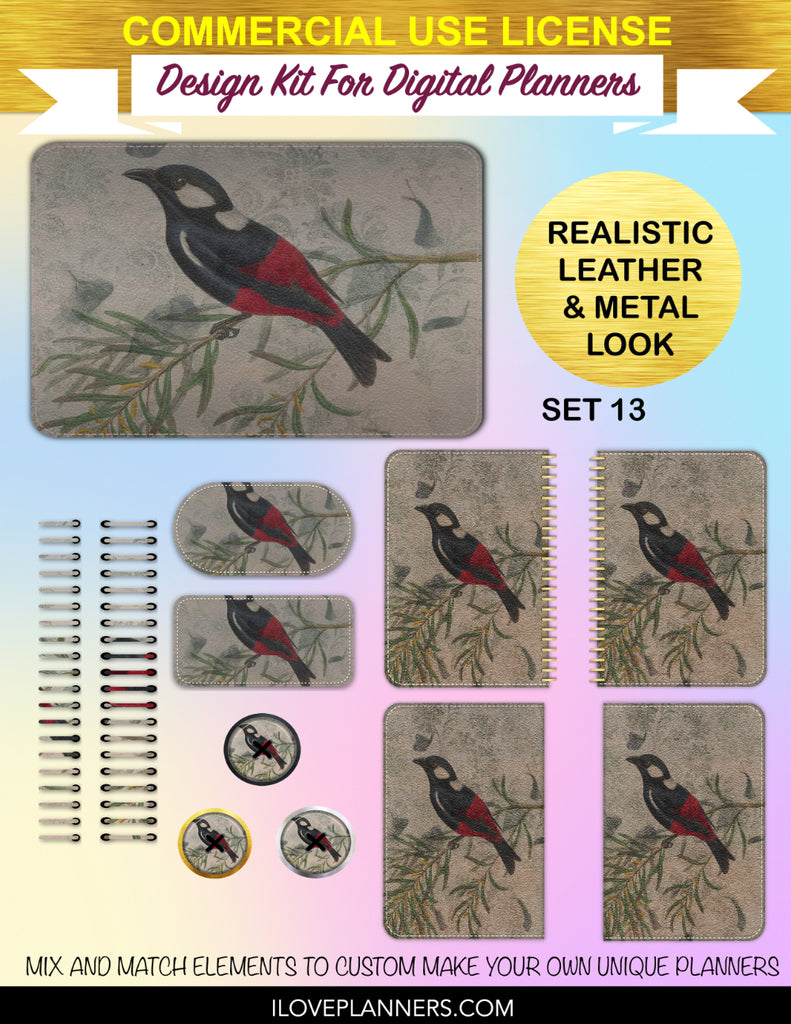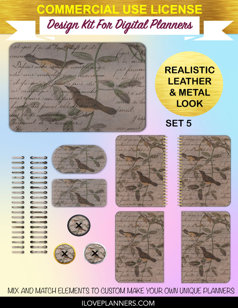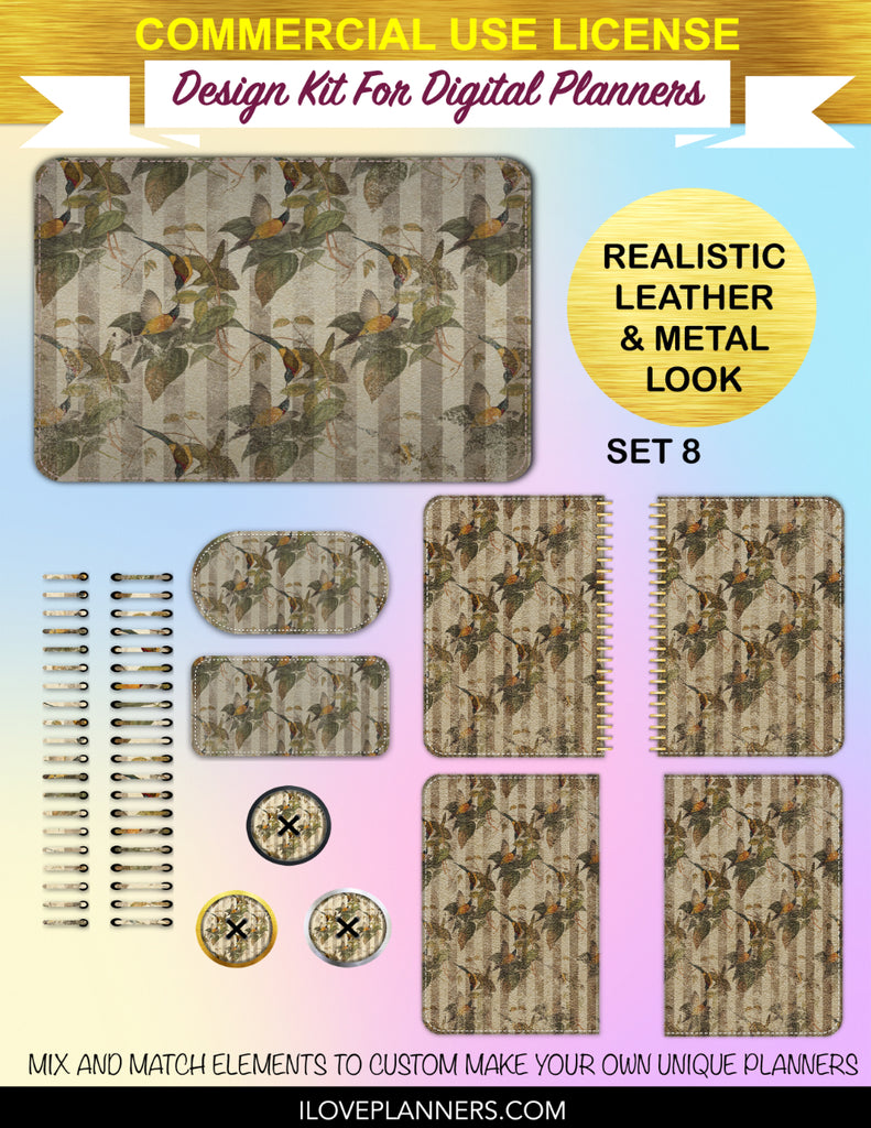 Bird Ephemera Digital Planners, Cover Kit, Spirals, Coils, Customize Your Digital Planners, Commercial Use OK, Digital Planners, Digital Journals, Compatible for PC, Mac, CANVA. #176