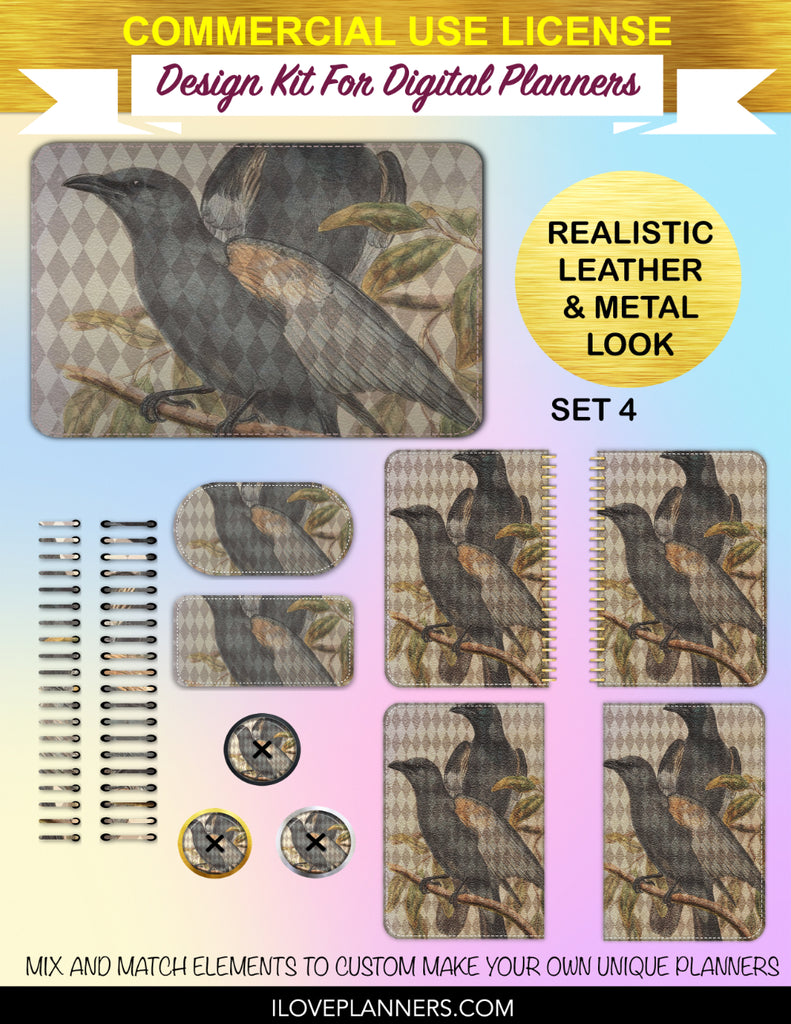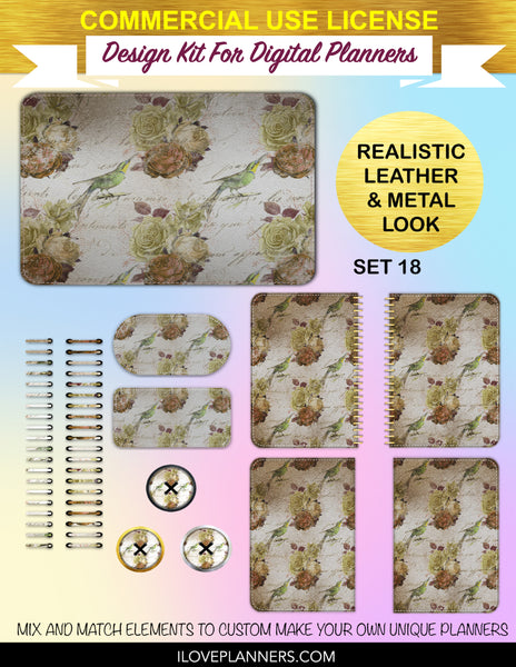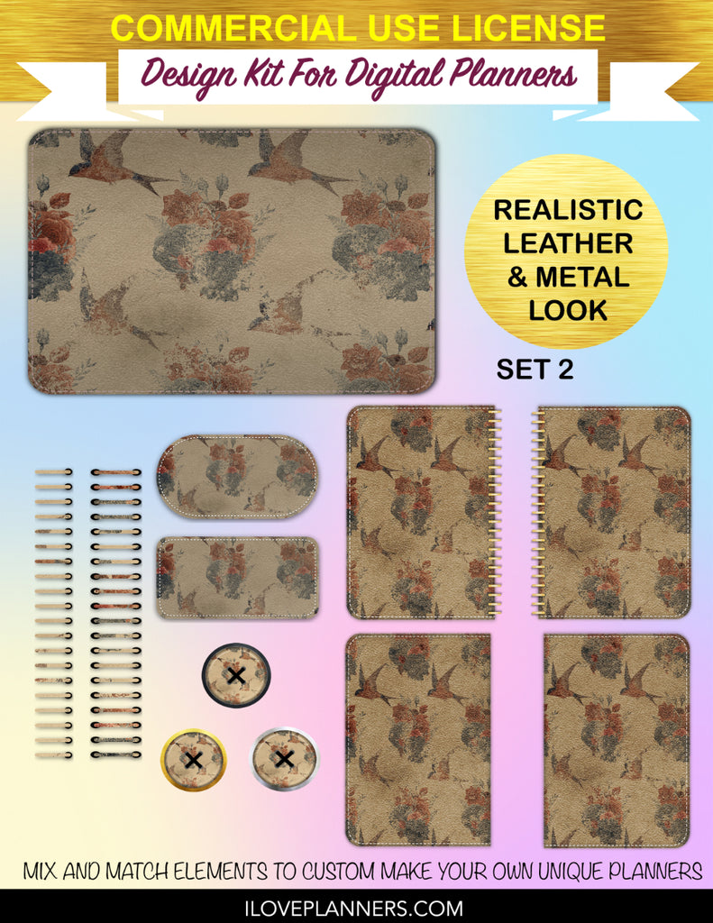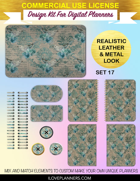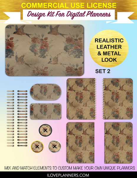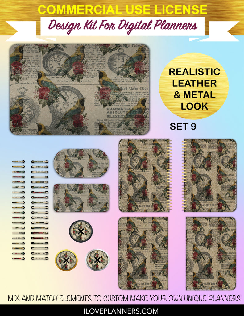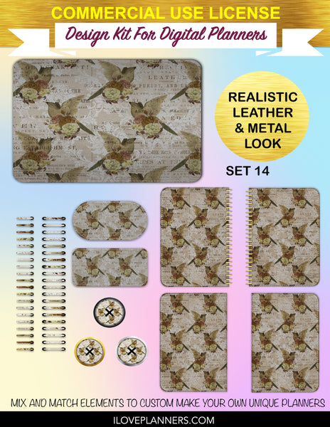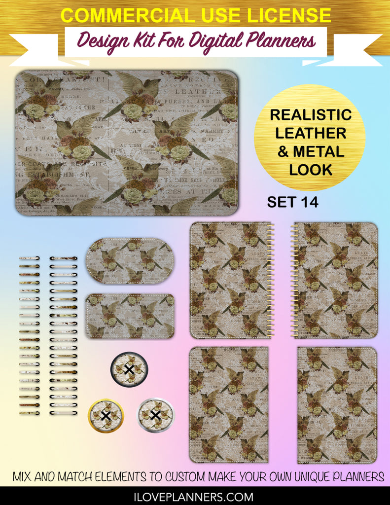 Bird Ephemera Digital Planners, Cover Kit, Spirals, Coils, Customize Your Digital Planners, Commercial Use OK, Digital Planners, Digital Journals, Compatible for PC, Mac, CANVA. #176