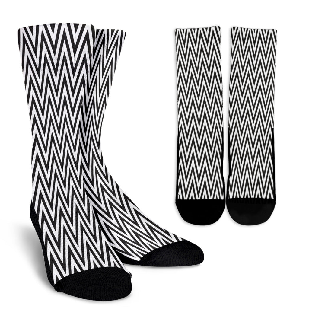 Black and White Zigzag Floral Spring Crew Socks