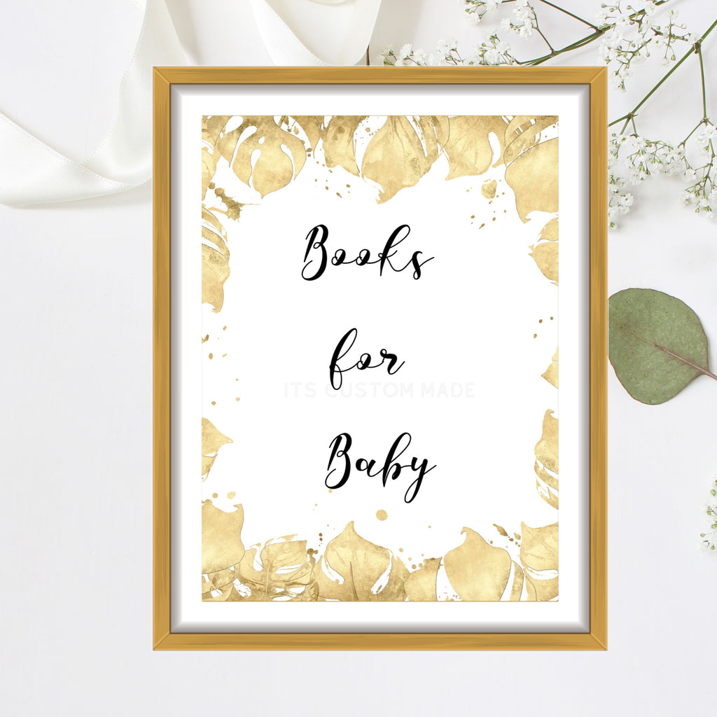 Books for Baby Party Sign - Girl Baby Shower Decorations Sign - Pink Floral Baby Shower Decor Sign - Book Basket Party Sign for Baby Shower - Gold Geometric Decor Signs