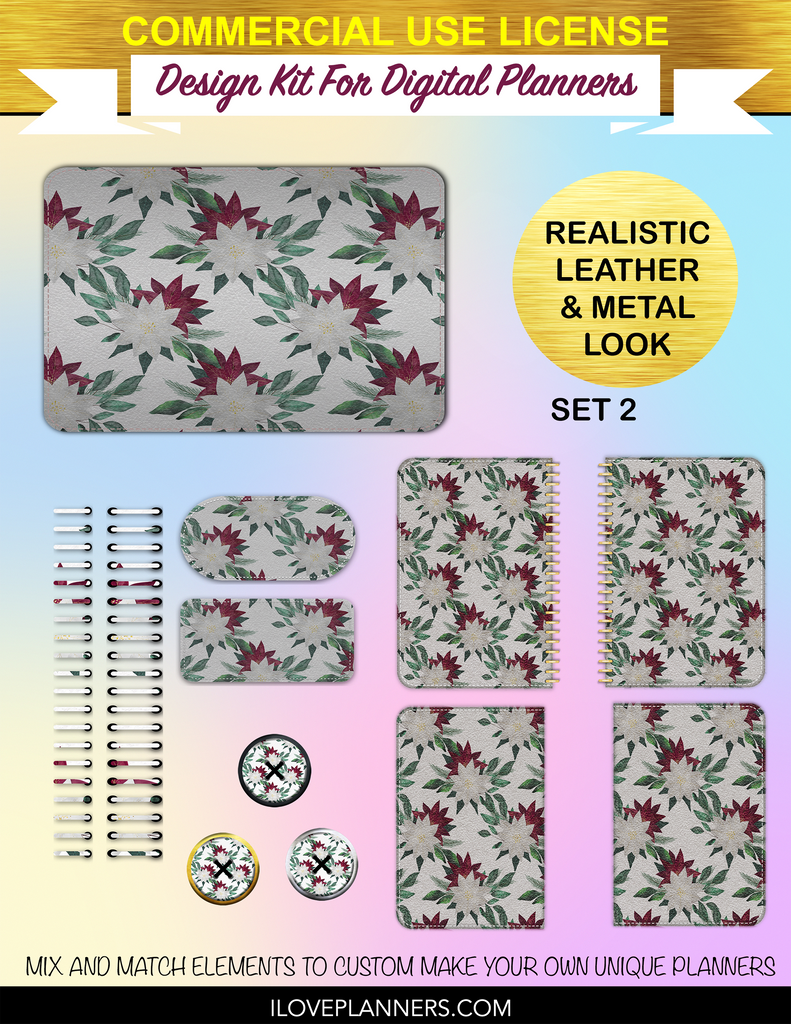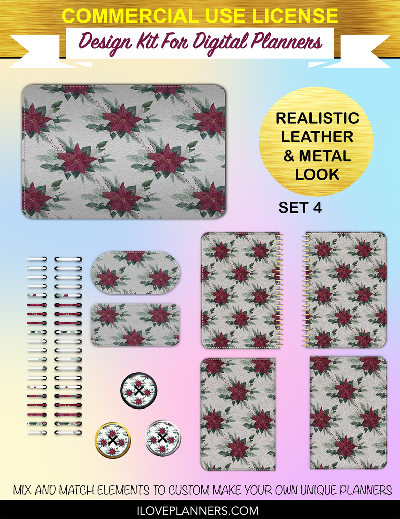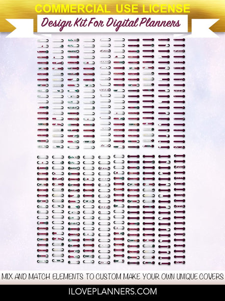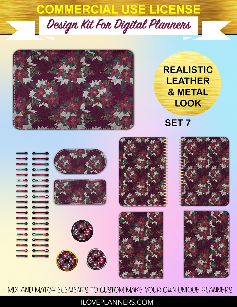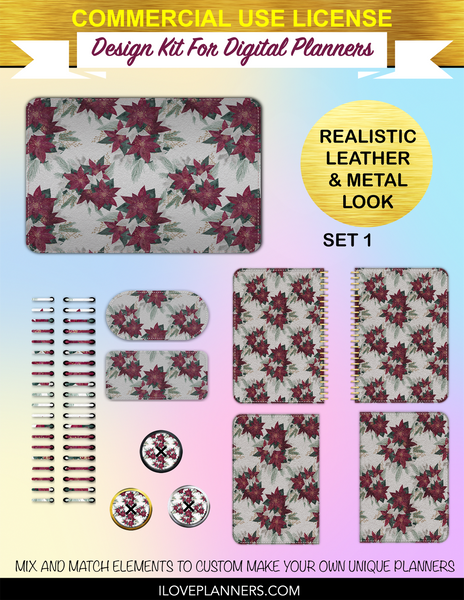 Burgundy Poinsettias Pattern for Digital Planners, Spirals, Coils, Customize Your Digital Planners, Commercial Use OK, Digital Planners, Digital Journals, Compatible for PC, Mac, CANVA. #11