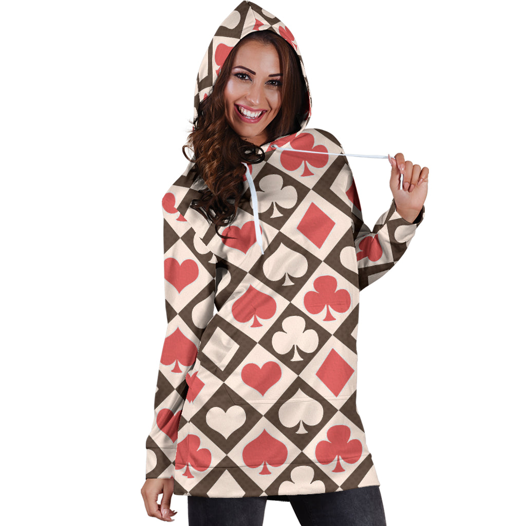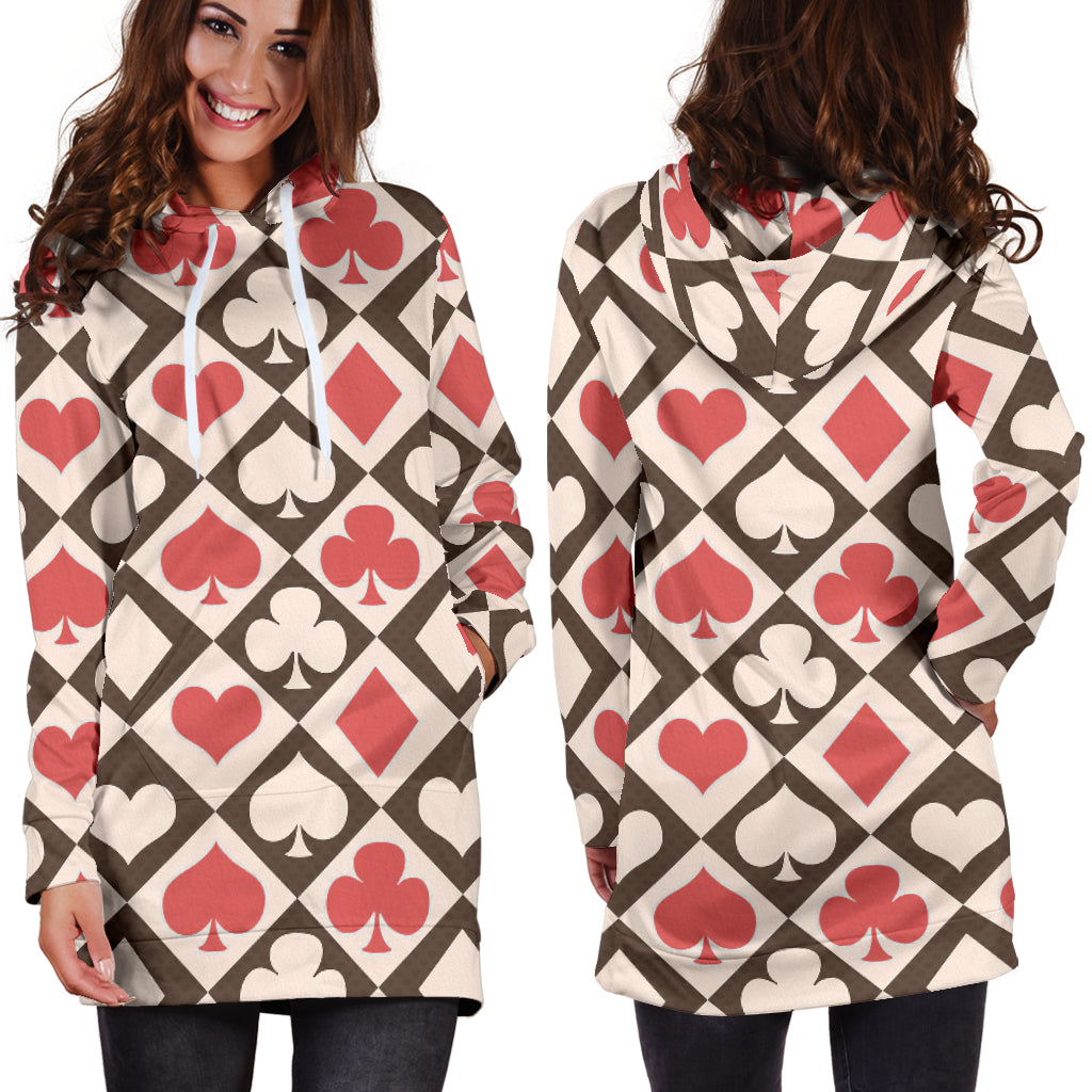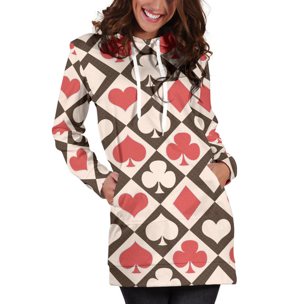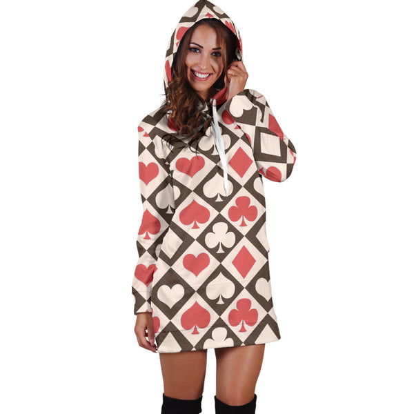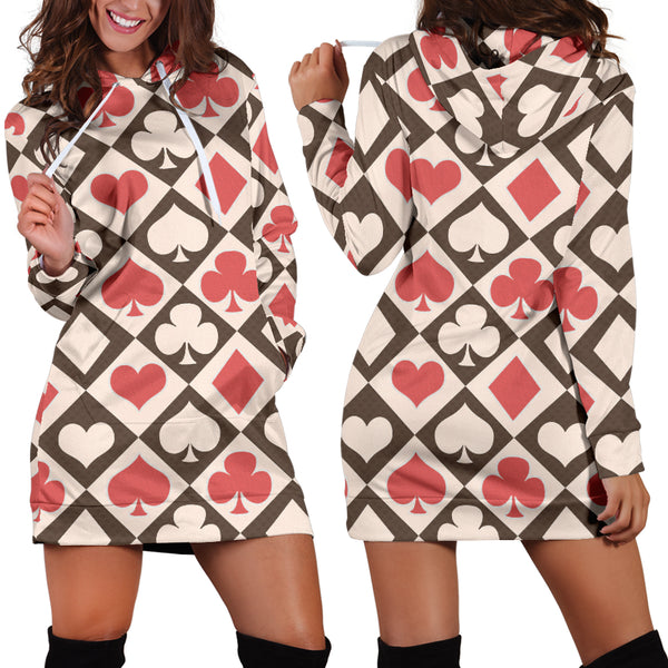 Studio11Couture Women Hoodie Dress Hooded Tunic Card Decks Alice In Wonderland Athleisure Sweatshirt