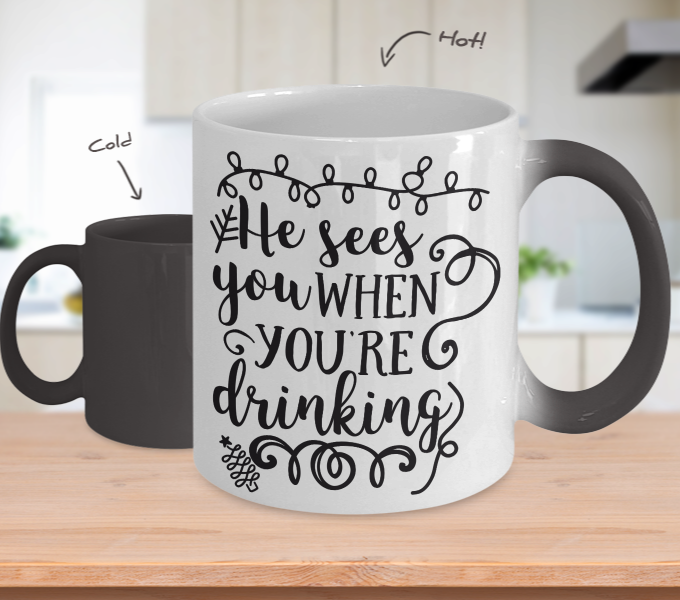 Color Changing Mug Christmas Holiday Winter He Sees You When You're Drinking