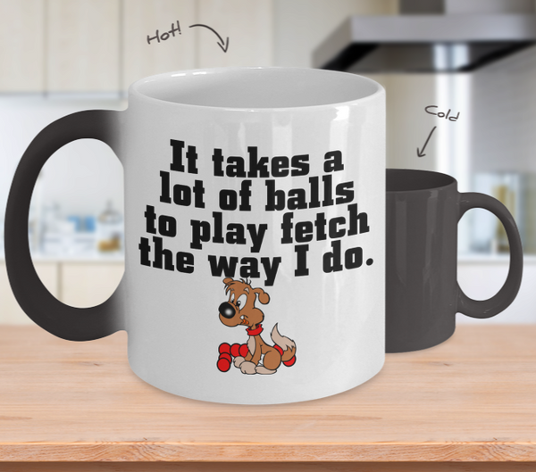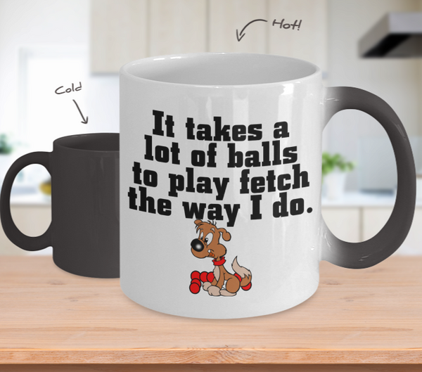 Color Changing Mug Dog Theme Its Takes A Lot Of Balls To Play Fetch The Way I Do