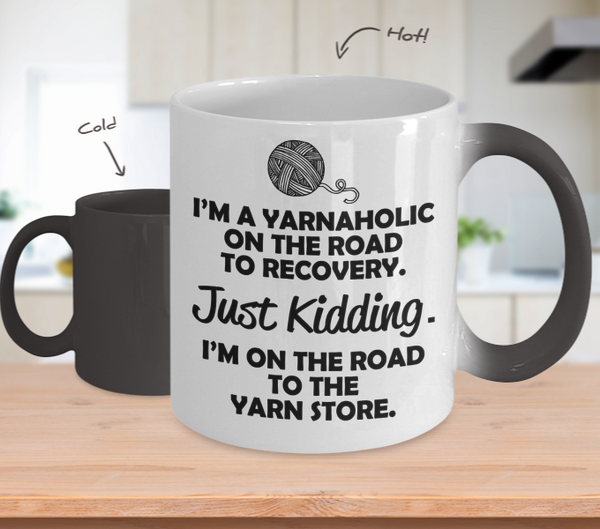 Color Changing Mug Drinking Theme I'm A Yarnaholic On The Road To Recovery Just Kidding I'm On The Road Yarn Store