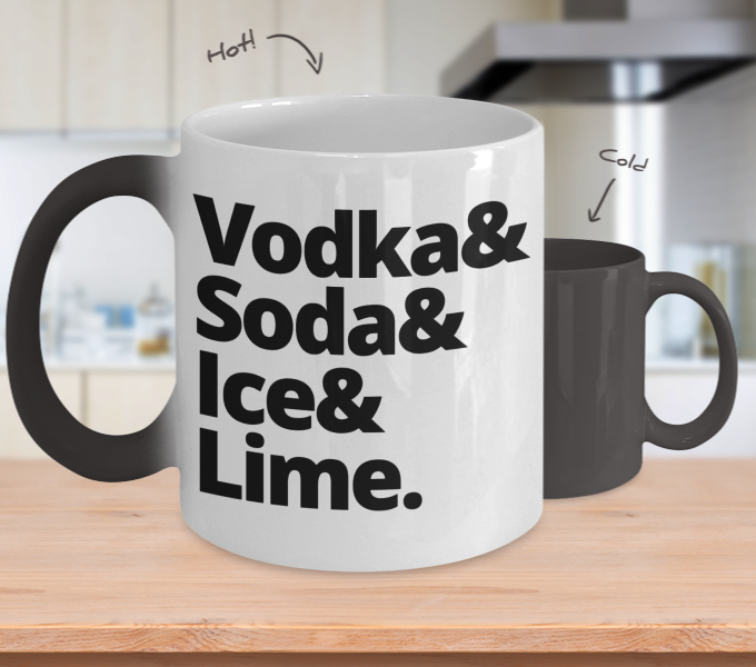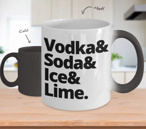 Color Changing Mug Drinking Theme Vodka& Soda& Ice& Lime