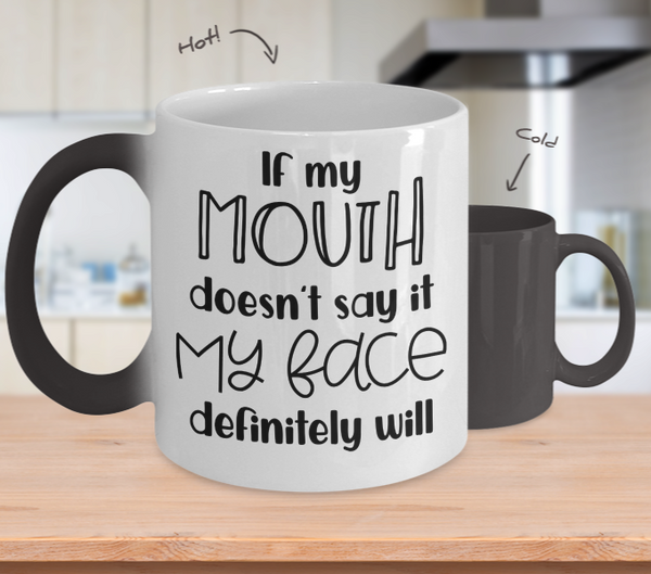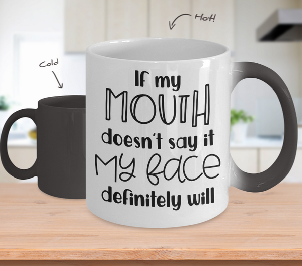 Color Changing Mug Funny Mug Inspirational Quotes Novelty Gifts If Mouth Doesn't Say It My Face Definitely Will