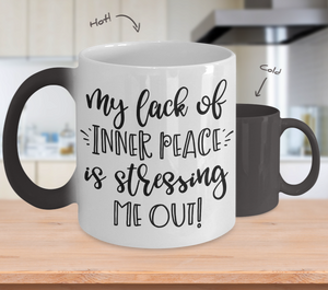 Color Changing Mug Funny Mug Inspirational Quotes Novelty Gifts Novelty My Lack Of Inner Peace Is Stressing Me Out