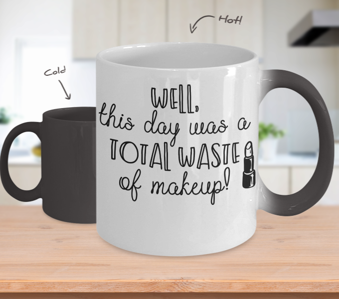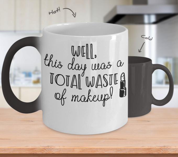Color Changing Mug Funny Mug Inspirational Quotes Novelty Gifts Well This Day Was A Total Waste Of Makeup